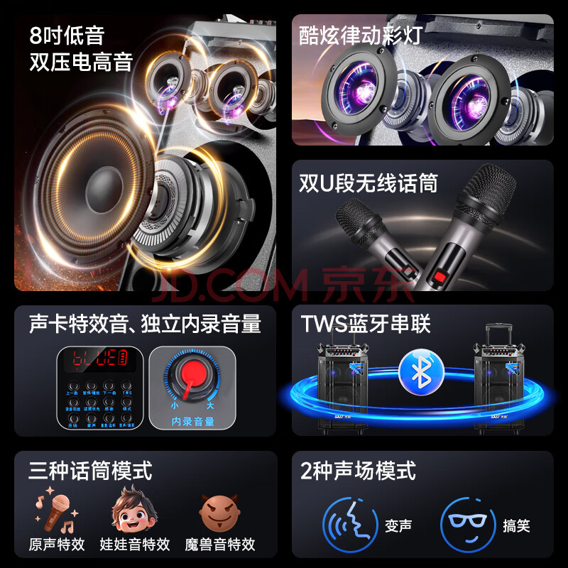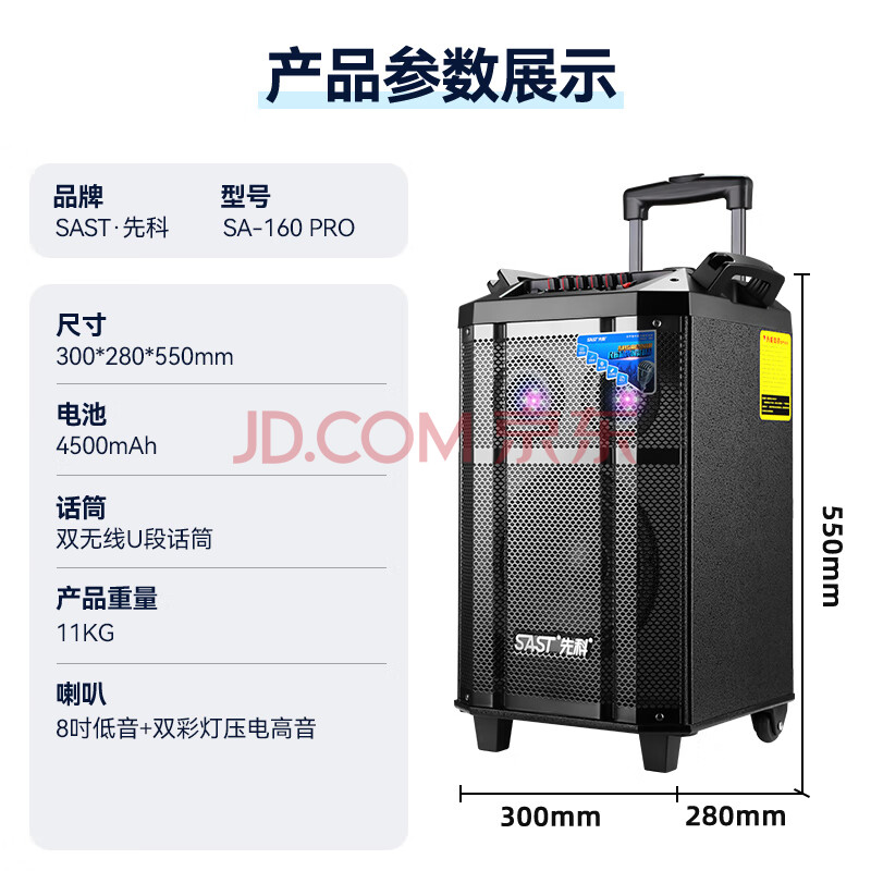 商品相册:先科音响户外广场舞专用大功率大音量移动便携拉杆音响10吋重低音唱歌高品质k歌专业设备SA-160第