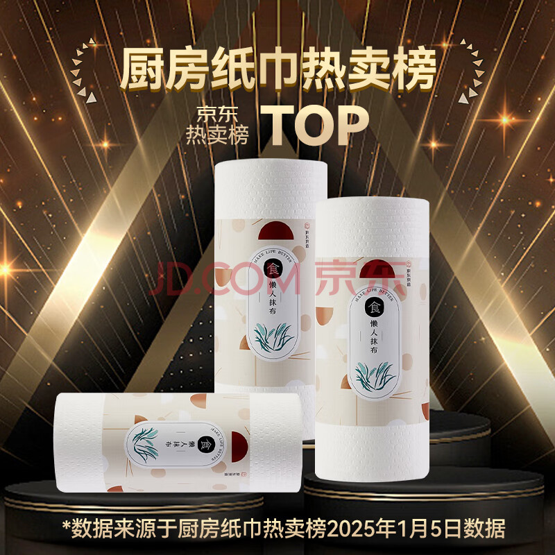 商品相册:京东京造 加厚一次性懒人抹布100片 厨房卷纸70g高克重 吸油吸水第