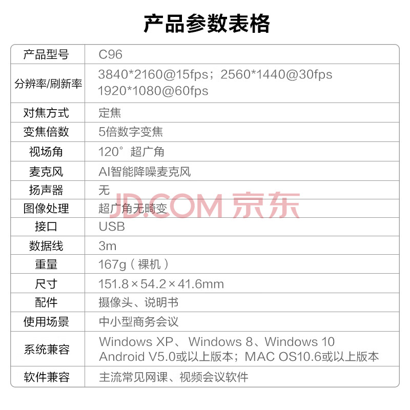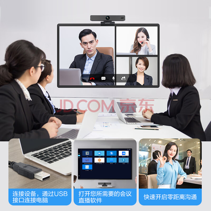 商品相册:奥尼(aoni)会议摄像头800万4K超清电脑摄像头大广角USB台式机笔记本电脑带降噪麦克风直播视频通话 C96第