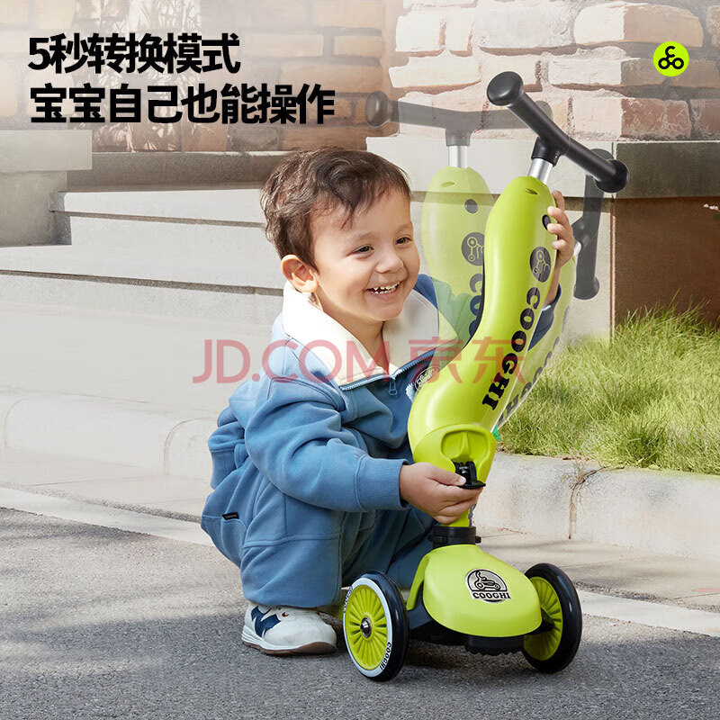 商品相册:酷骑儿童滑板车V2二合一多功能童车重力转向静音1-5岁生日礼物经典粉第