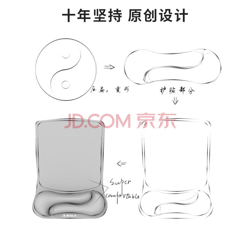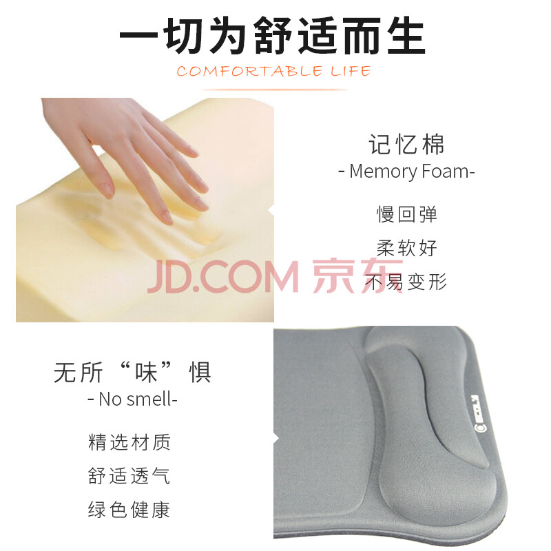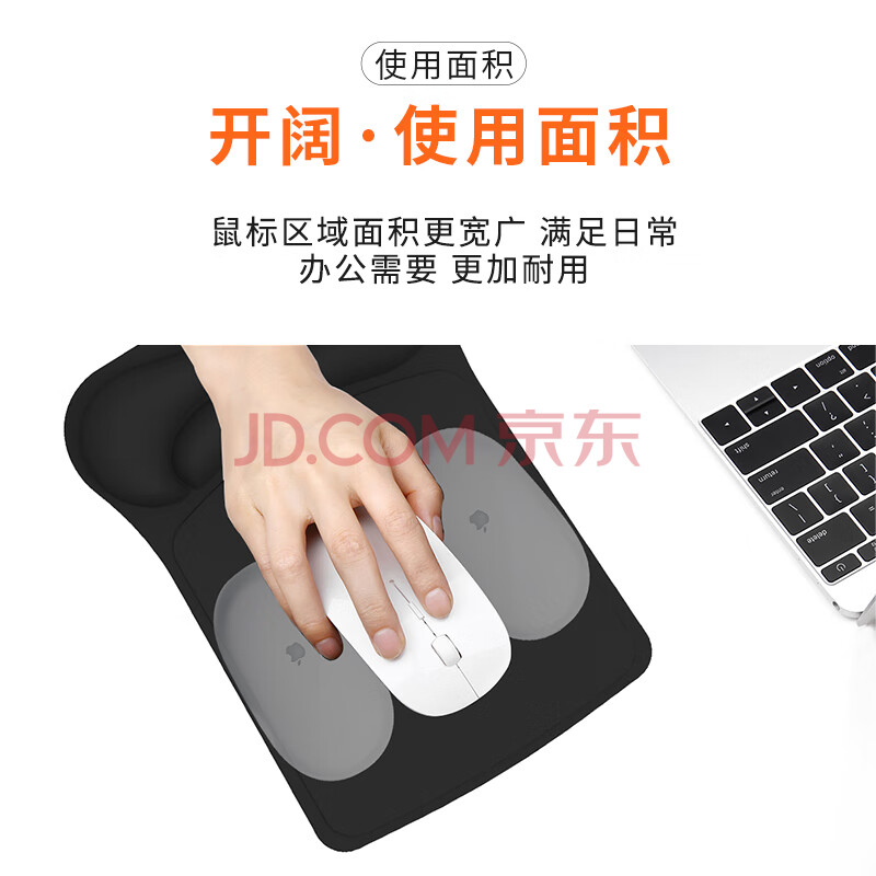 商品相册:宜客莱(ECOLA)人体工学护腕鼠标垫 超大特厚记忆棉游戏专用腕托商务办公桌垫 黑色第