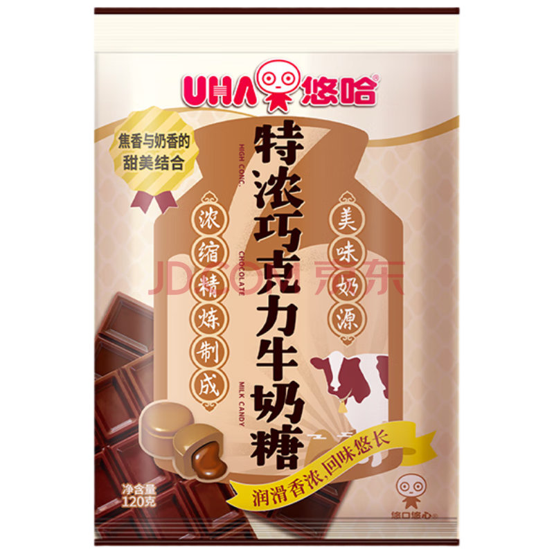 商品相册:悠哈 特浓巧克力牛奶糖 120g 国产 休闲零食糖果 婚庆喜糖 独立包装第