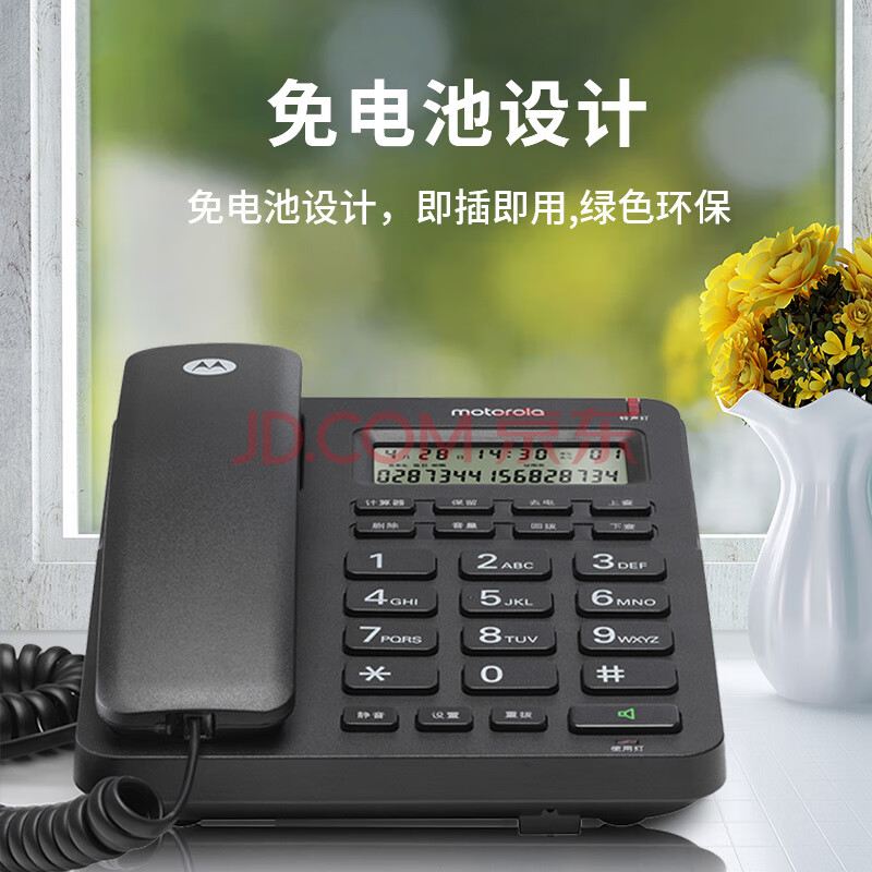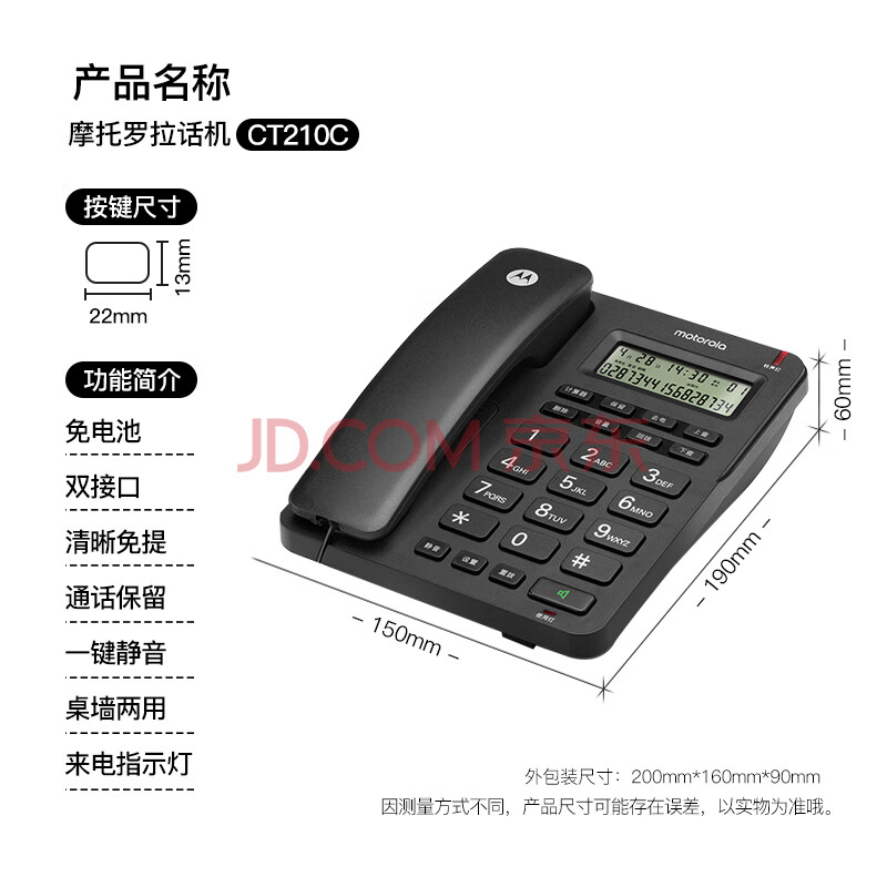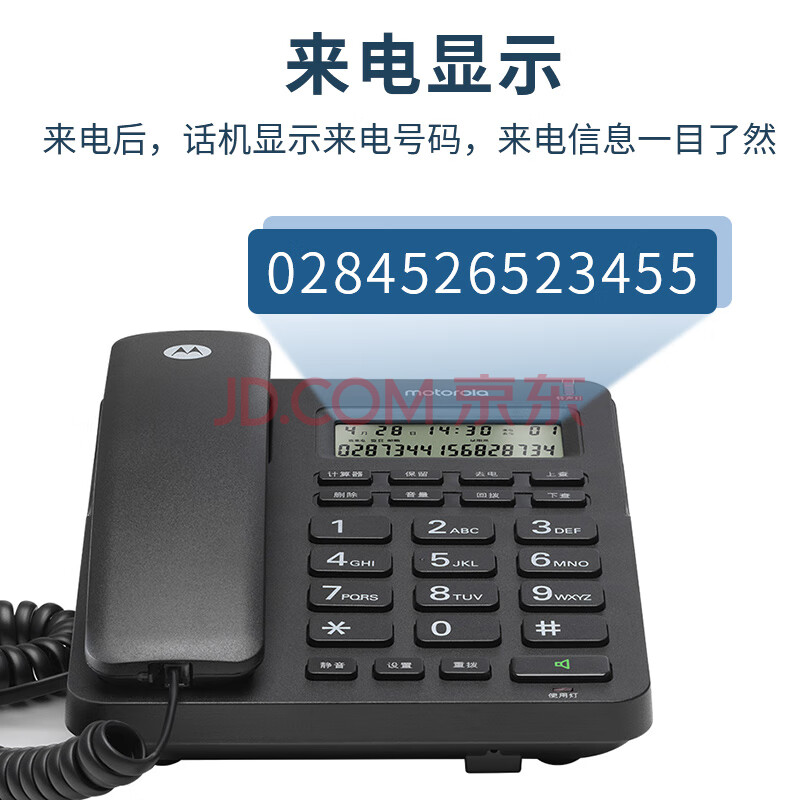 商品相册:摩托罗拉(Motorola)电话机座机固定电话 办公家用 免提 免打扰 简约时尚CT210C(黑色)第