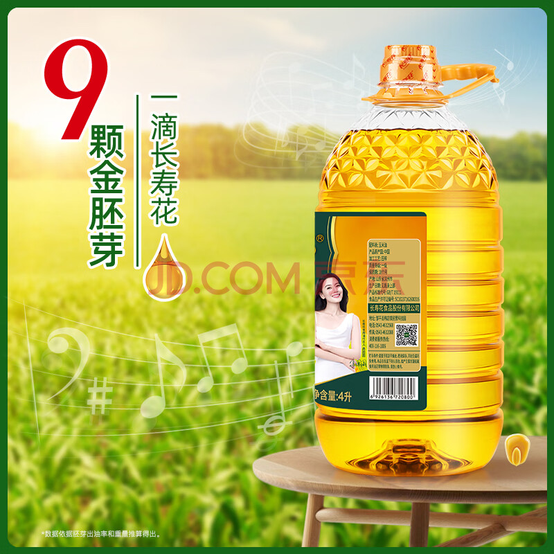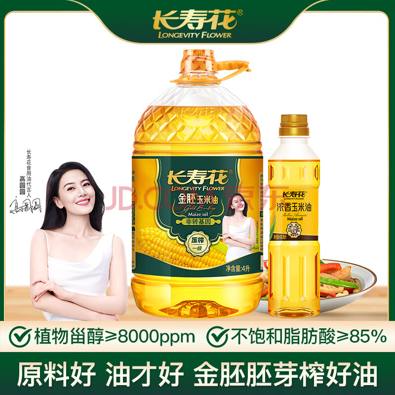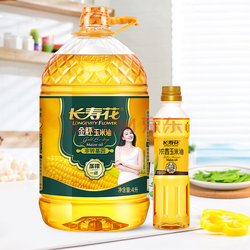 商品相册:长寿花金胚玉米油 4L+浓香玉米油400ml 非转基因压榨一级食用油套装第