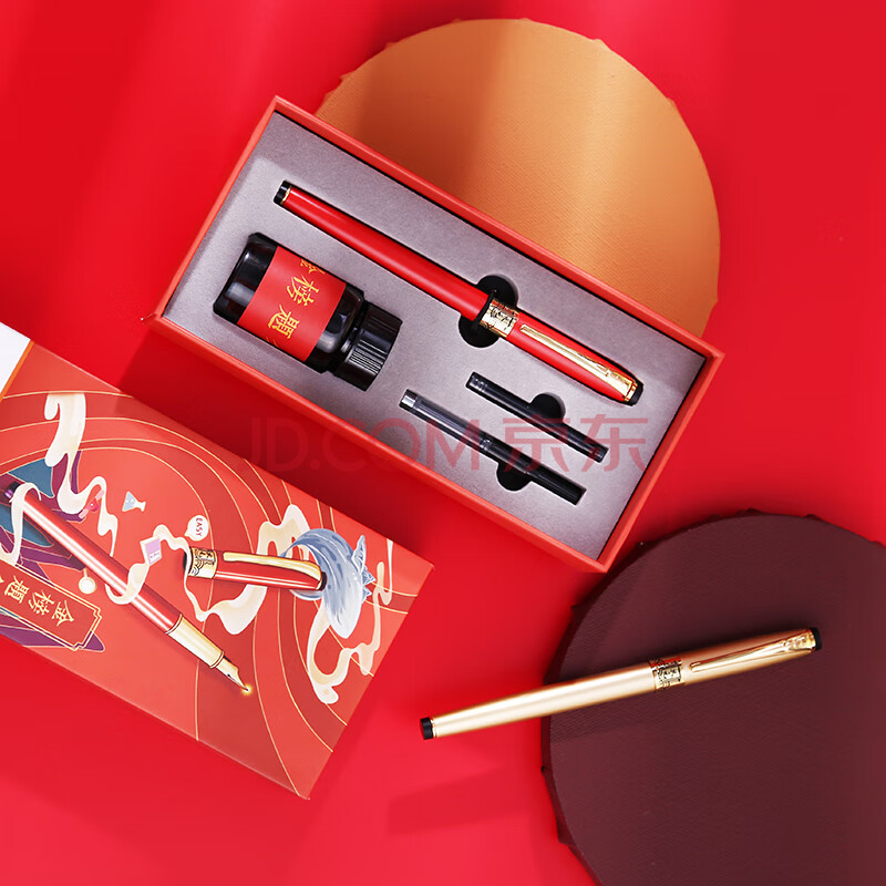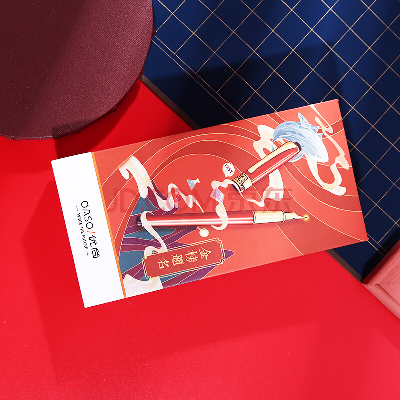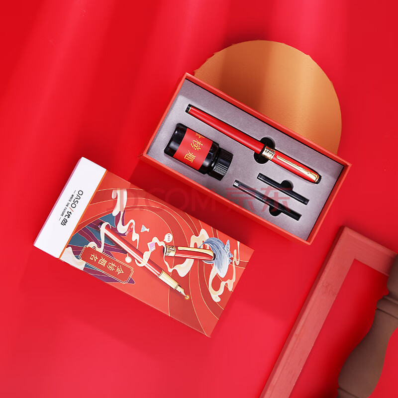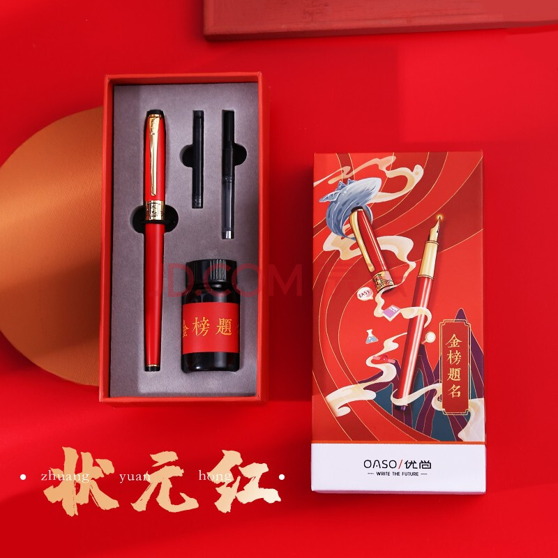 商品相册:【开学必备】优尚(OASO)钢笔 金榜状元红墨水礼盒套装 商务办公礼品签字笔礼盒礼品A8101-2 状元红 铱金笔第
