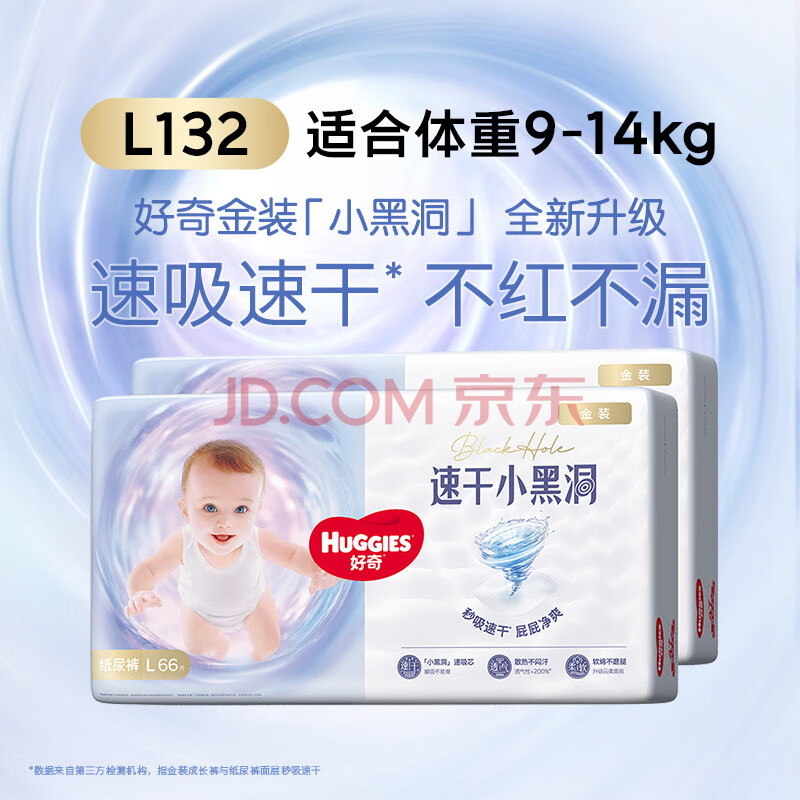 商品相册:好奇(Huggies)金装纸尿裤L132片(9-14kg)尿不湿【速干不易红】第