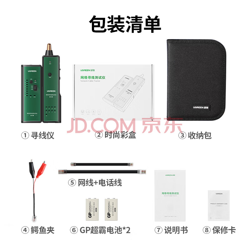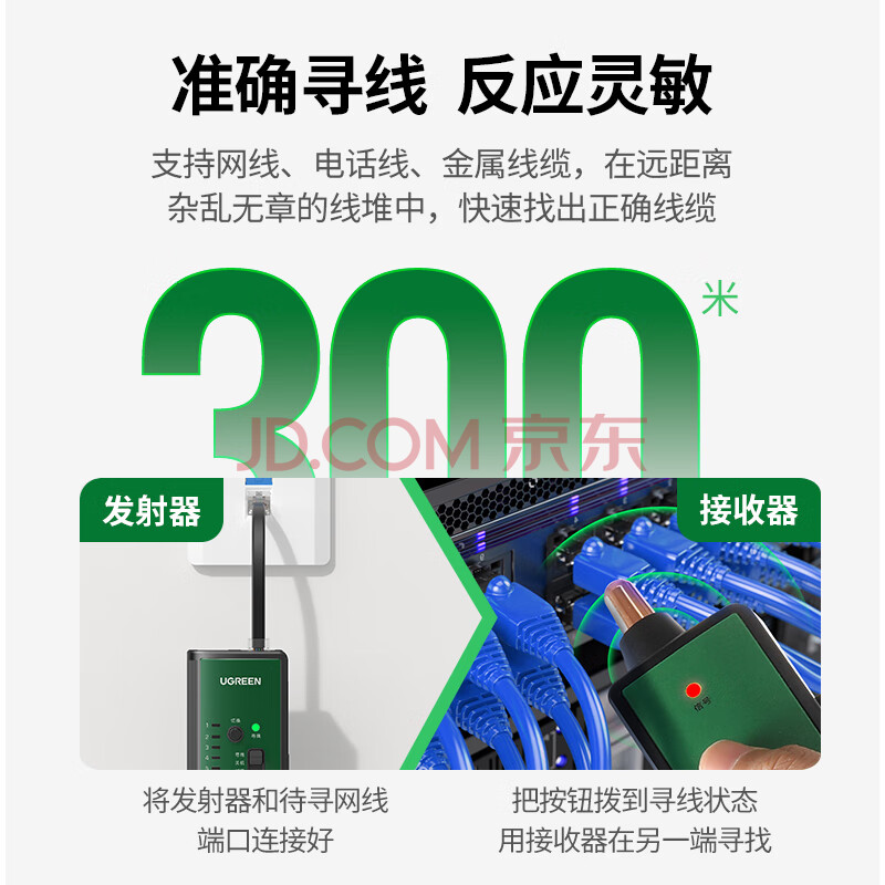 商品相册:绿联网络寻线仪 多功能电话网线测线仪寻线器 测线查线仪查线器 60V耐压防烧巡线仪通断器套装 10951第1张/共9