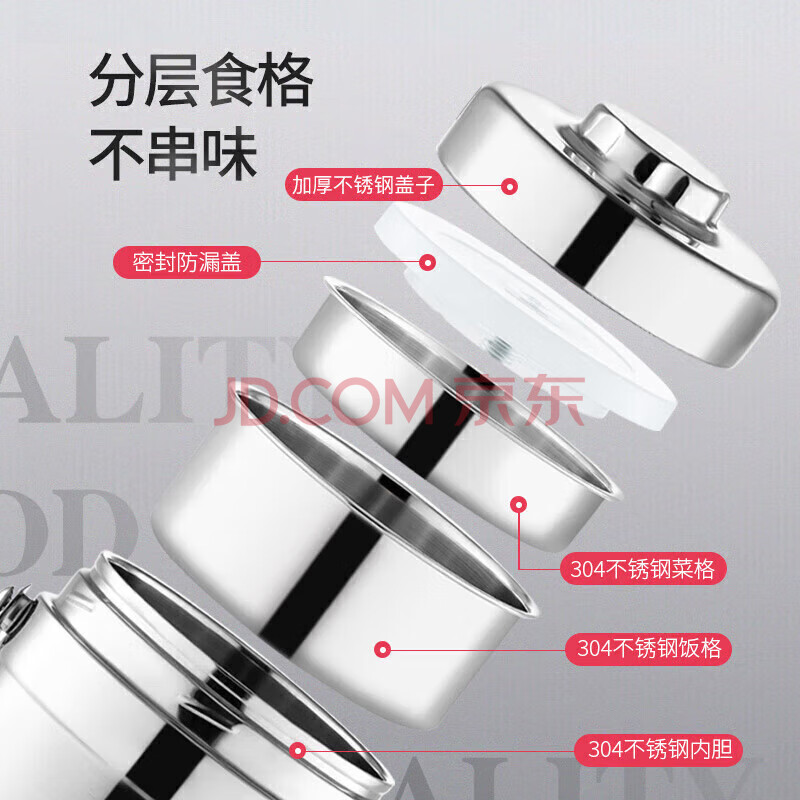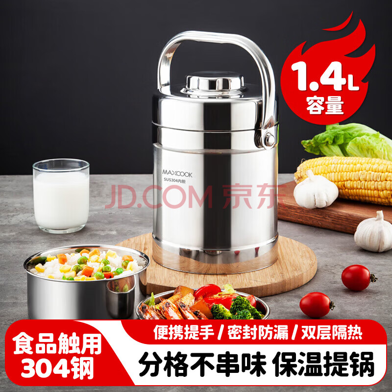 商品相册:美厨(MAXCOOK)304不锈钢保温饭盒提锅1.4L 双层保温桶学生便携式饭盒 MCTG3684第