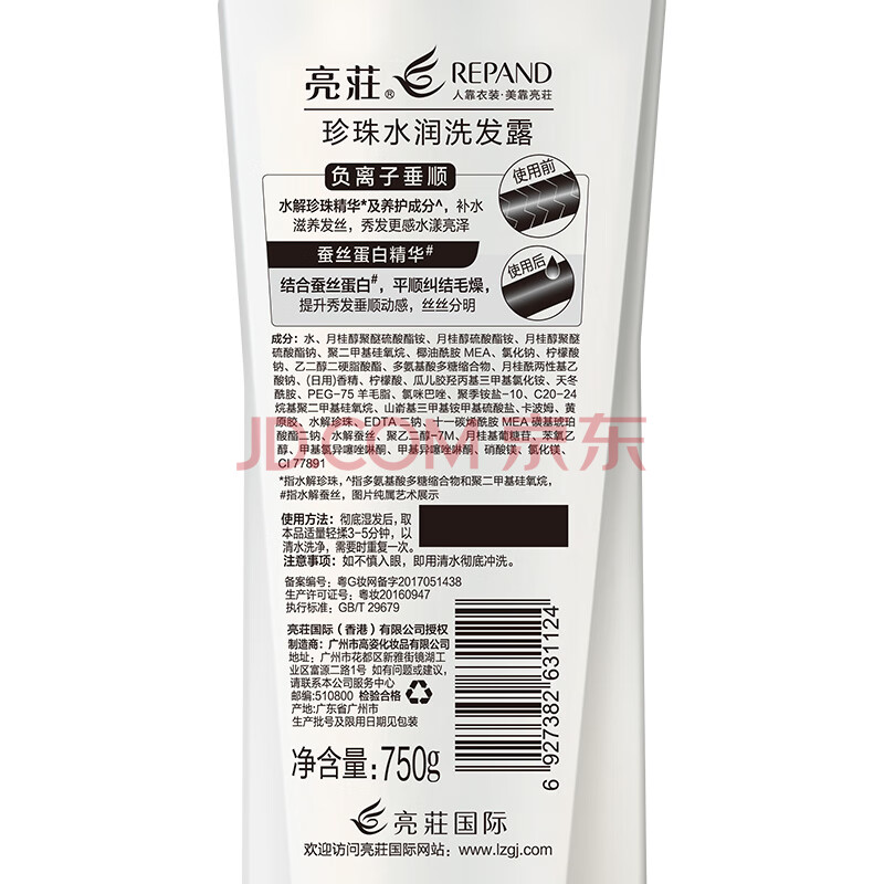 商品相册:亮荘珍珠水润洗发水750g负离子垂顺丝滑洗发露丰盈蓬松秀发顺滑第