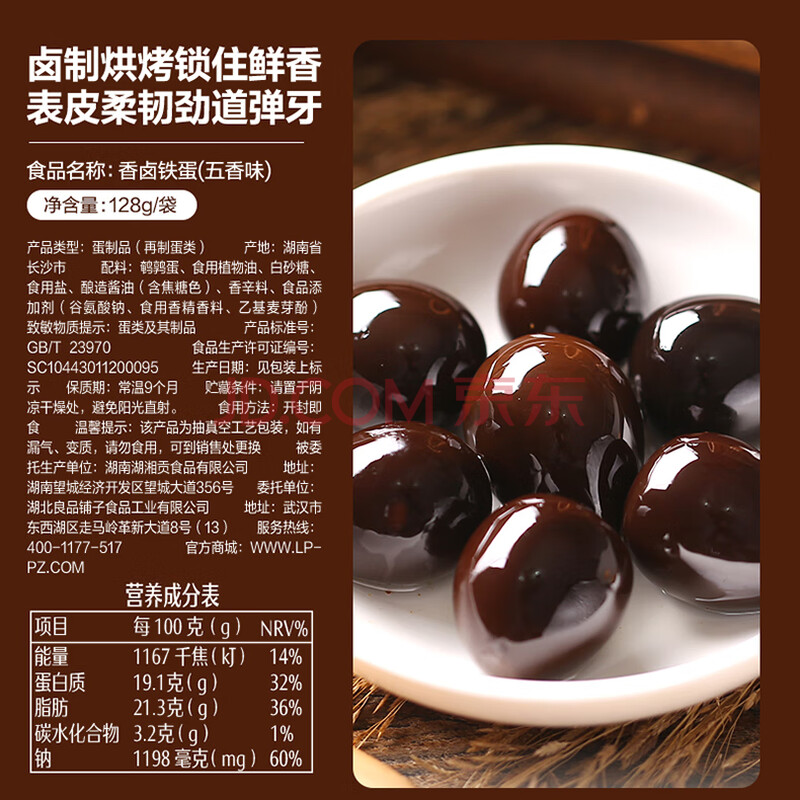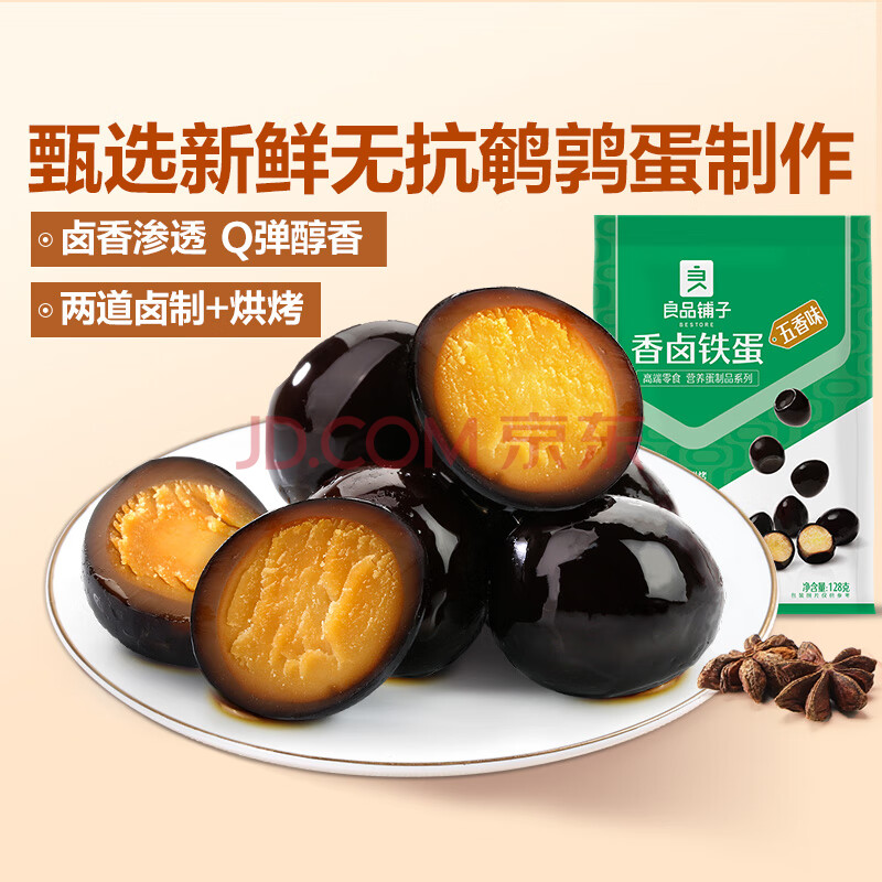 商品相册:良品铺子 鹌鹑蛋卤蛋铁蛋五香味熟食休闲零食小袋独立包装年货零食128g第