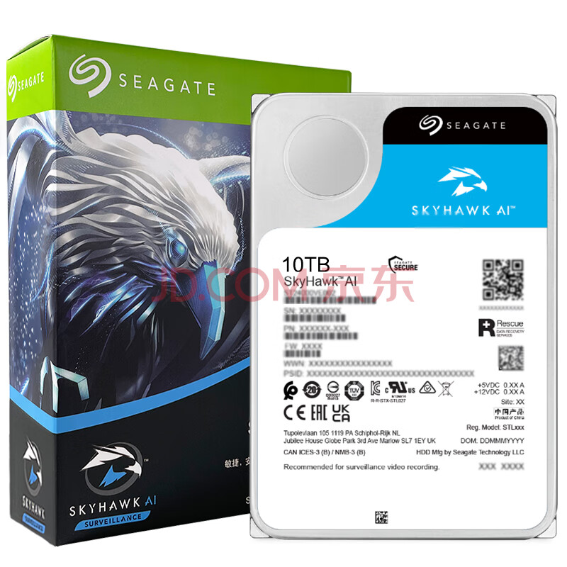 商品相册:希捷(SEAGATE)安防硬盘 10TB 256MB SATA CMR垂直 机械硬盘 视频储存 五年质保 希捷酷鹰AI 3.5英寸ST10000VE001第