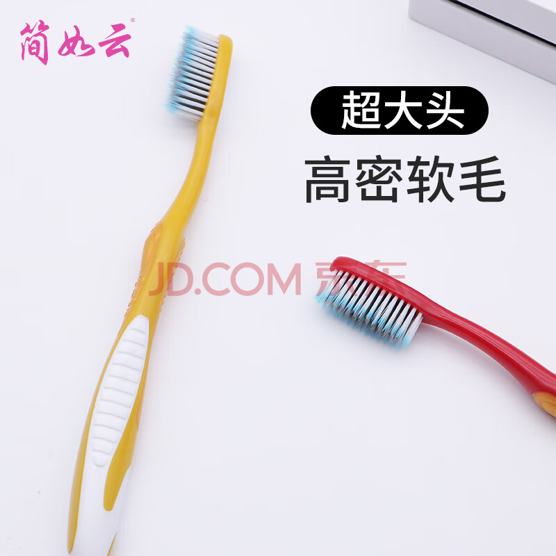 商品相册:简如云 超大头加密超密软毛牙刷6支独立装成人家用男士女士专用颜色随机第