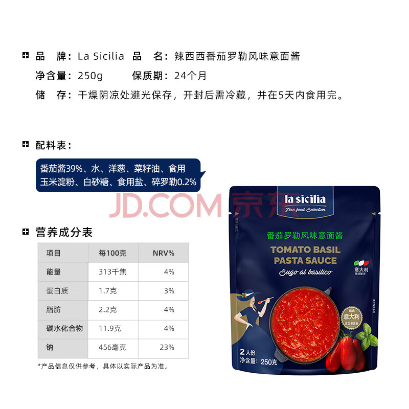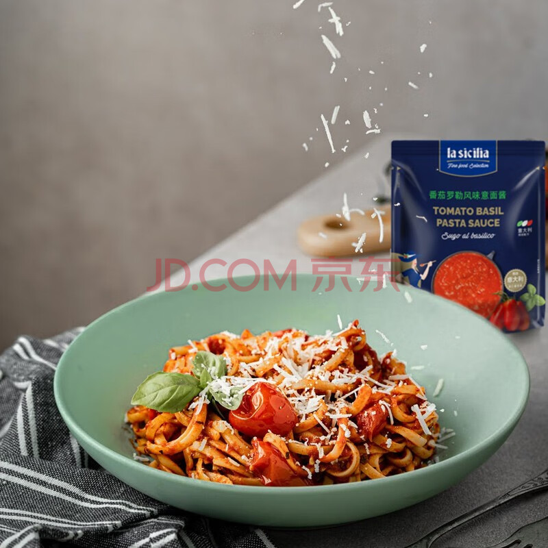 商品相册:lasicilia番茄罗勒风味意面酱250g 2人份意大利面酱西餐番茄酱打卤面拌面酱第
