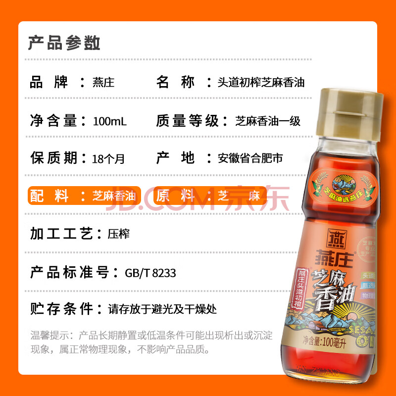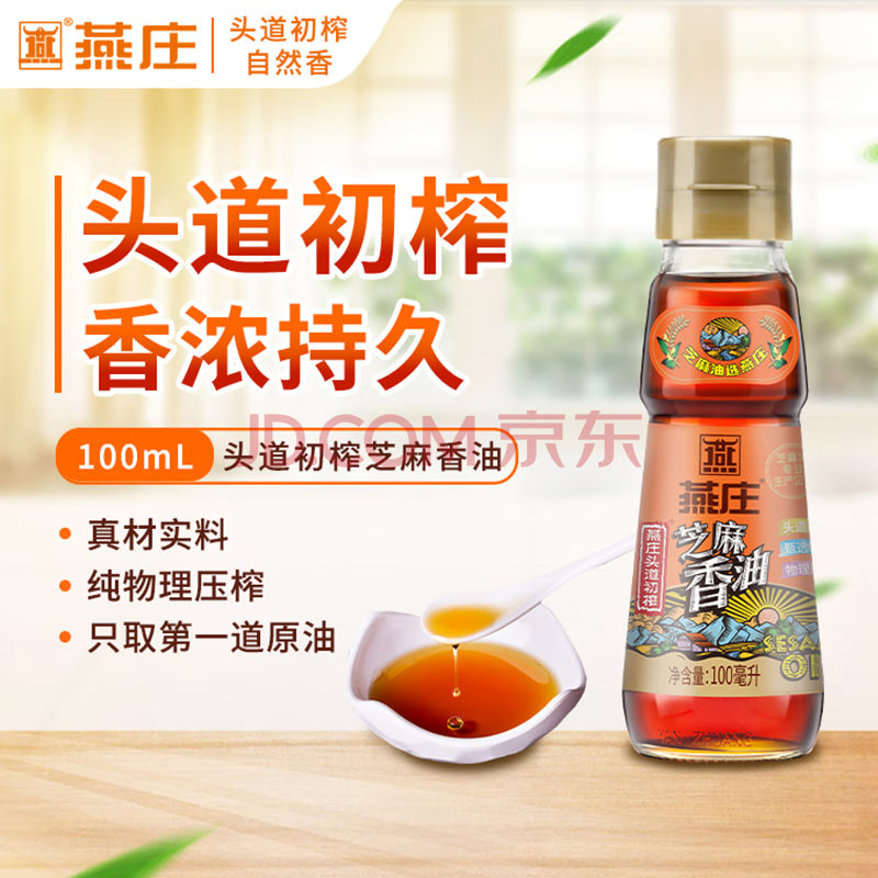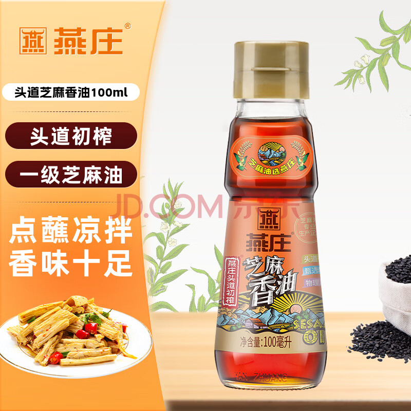 商品相册:燕庄 香油100ml【一级】头道初榨纯芝麻油 凉拌火锅油碟调味第