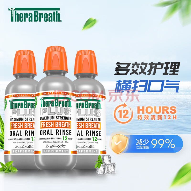 商品相册:TheraBreath凯斯博士漱口水加强护理plus深层清洁473ml*3瓶清新口气0酒精抑菌第1张/共6