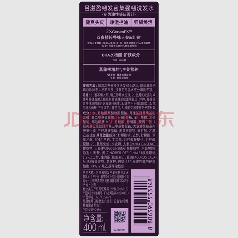 商品相册:吕(Ryo)紫吕洗发水400ml*2 控油蓬松强韧防断发洗发膏洗发露【油头专研】第