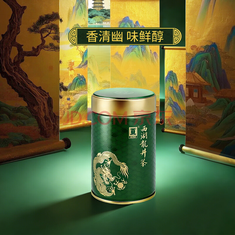 商品相册:贡牌2026新茶上市 绿茶龙罐西湖龙井茶AA级50g明前罐装源头直发第
