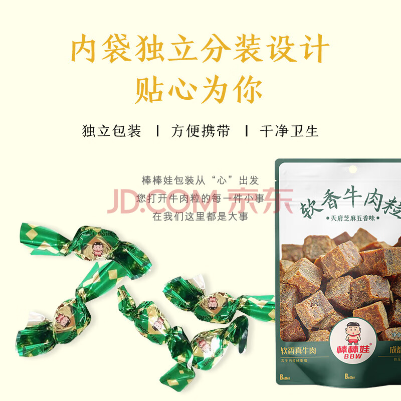 商品相册:棒棒娃 软香牛肉粒五香味80g 休闲牛肉干肉脯零食四川特产第