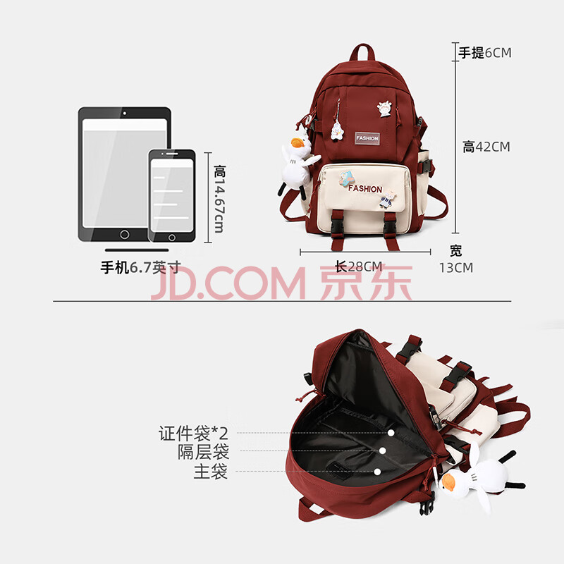 商品相册:viney儿童书包小学生高中初中大学生大容量双肩包女日系百搭旅行背包第