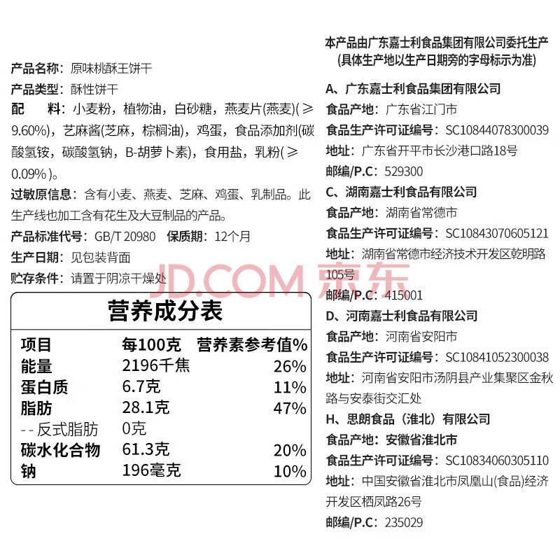商品相册:嘉士利桃酥饼干 传统中式点心糕点 桃酥王原味800g/盒整箱 零食礼盒第