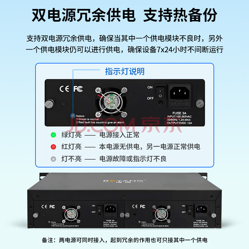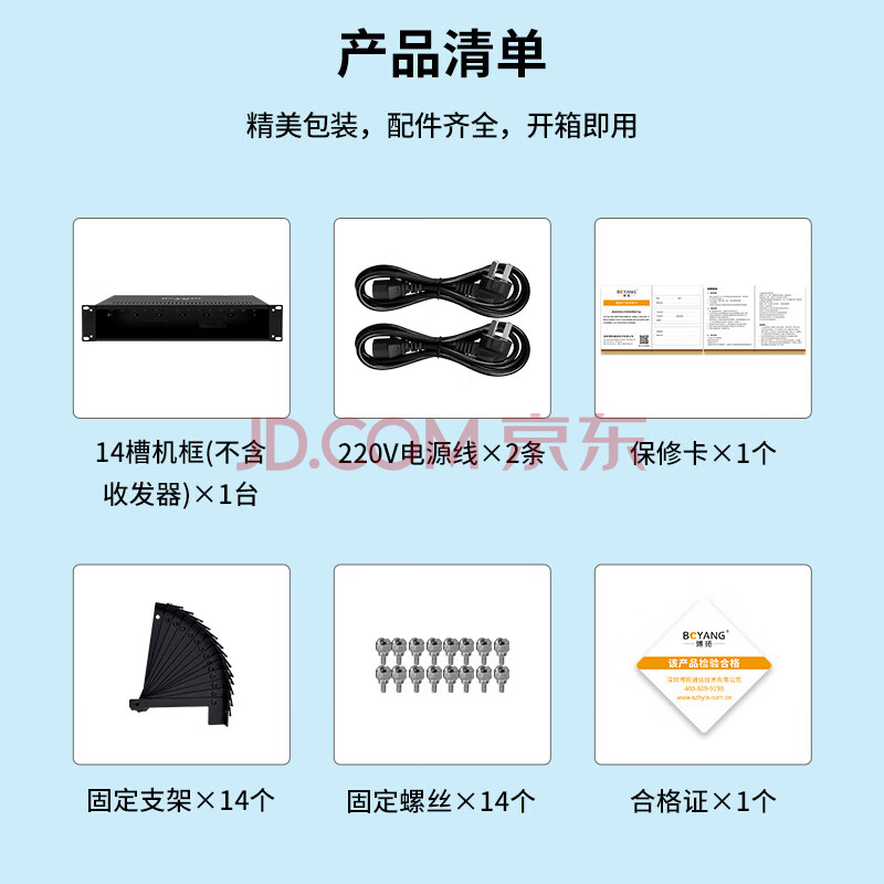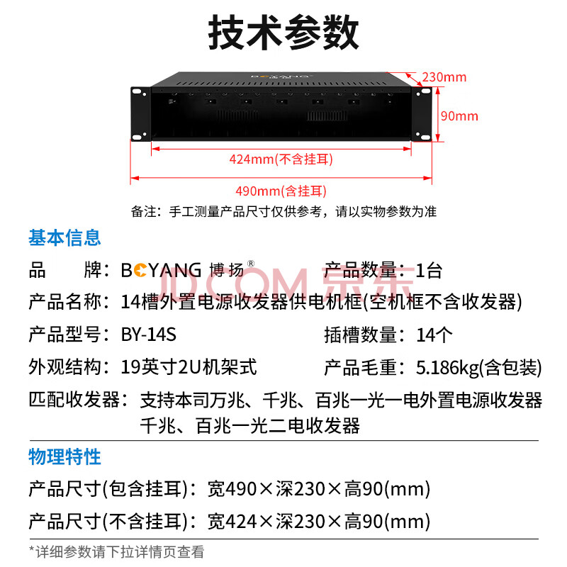 商品相册:博扬(BOYANG)BY-14S 电信级14槽千兆百兆外置电源光纤收发器机架 19英寸2U机箱 220V供电 双电源保护 1台价第