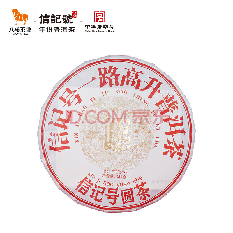 商品相册:八马茶业信记号 中华老字号 普洱茶临沧生普茶叶357g 2020年饼茶第