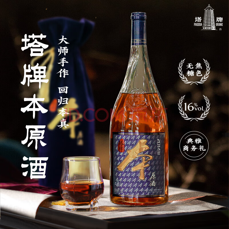 商品相册:塔牌 本原酒2014年 半干型 绍兴黄酒 1.38L 单瓶装 无焦糖色第