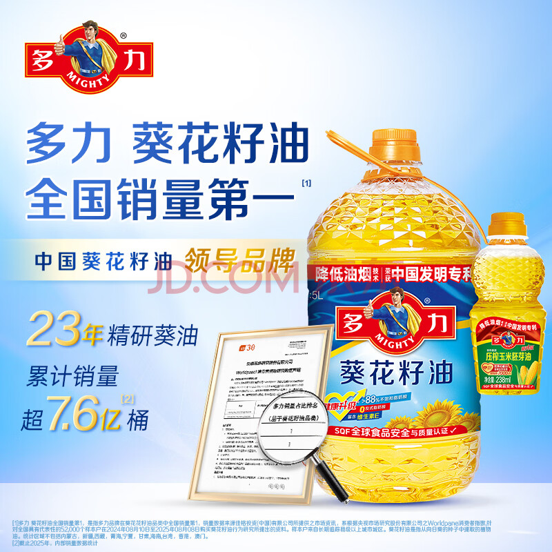 商品相册:多力经典葵花籽油5L+238ml食用油物理压榨零反式脂肪酸第