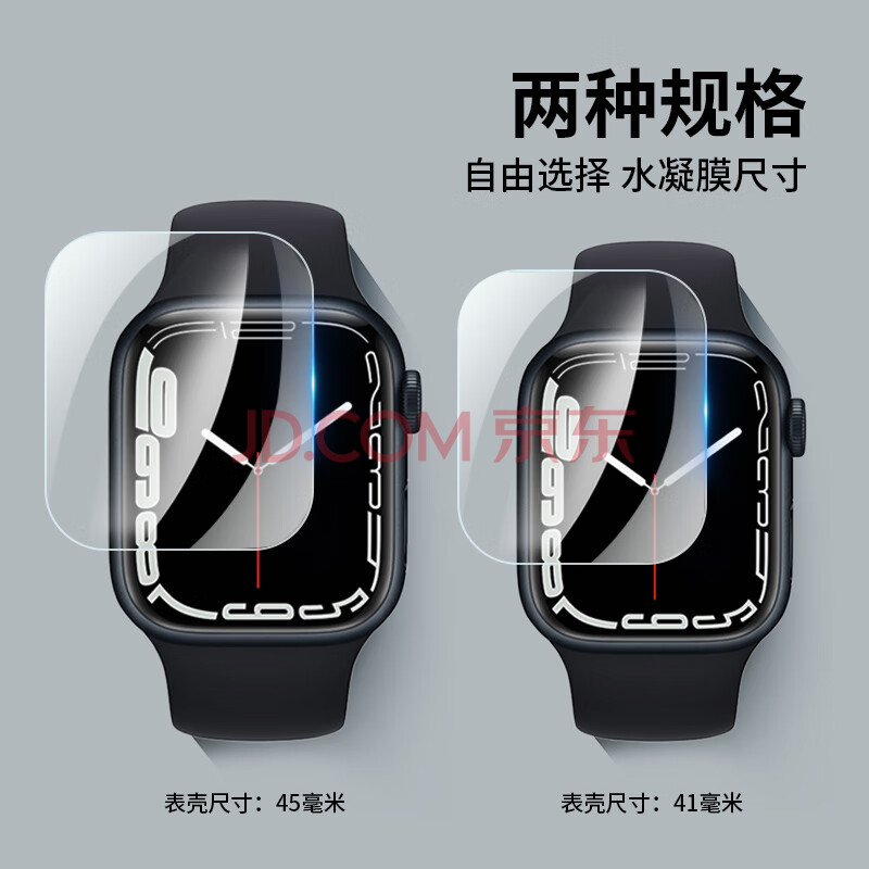 商品相册:ESCASE【两片装】适用苹果手表膜S9/S8/SE2通用Apple iWatch7/6/5/4保护膜45/44mm全屏刮防指纹水凝软膜第