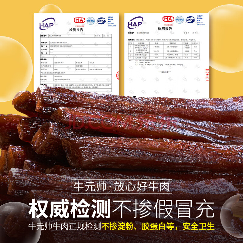 商品相册:牛元帅八成干风干牛肉干健康营养休闲零食内蒙古特产解馋肉脯500g原味第