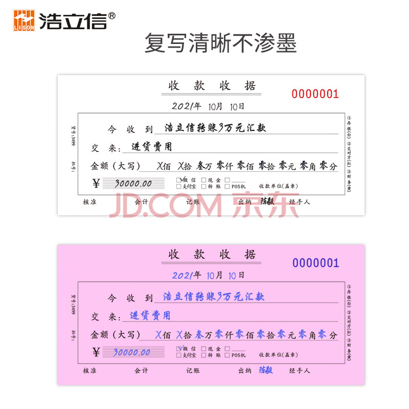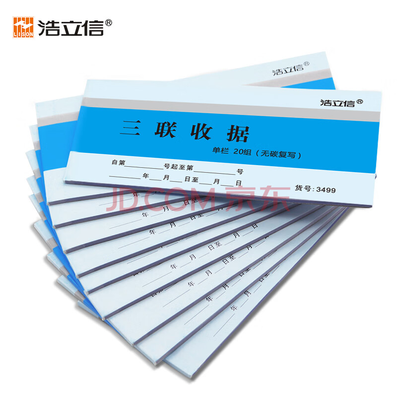 商品相册:浩立信(LISON) 54K 三联收款收据 20组10本装60页 单栏无碳复写手写带撕裂 收款凭证单 175*80.5mm第