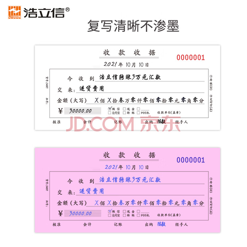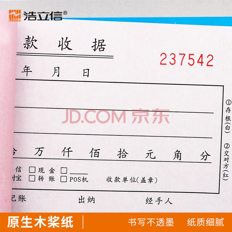 商品相册:浩立信(LISON)【超级爆款】收款收据二联单栏收据20组10本装54K 175*80.5mm手写收据无碳复写带垫板收据单第