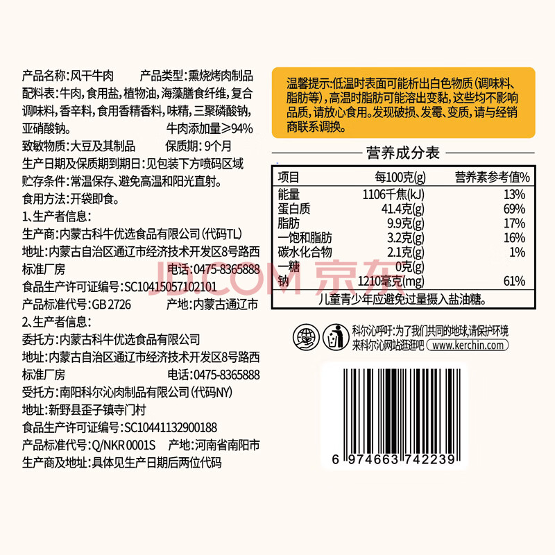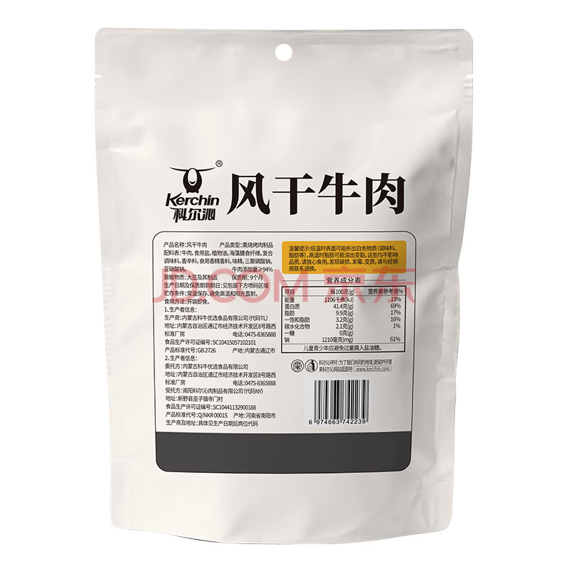 商品相册:科尔沁 凹凸有型风干牛肉干原味200g 小块肉干肉脯 休闲零食 第