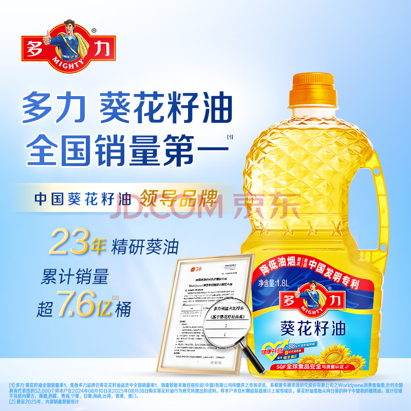商品相册:多力葵花籽油1.8L小瓶家用压榨零反式脂肪酸第1张/共8