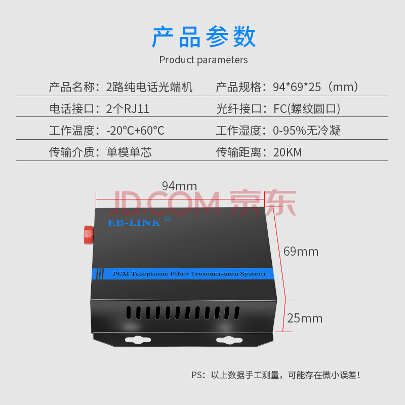 商品相册:EB-LINK 电话光端机2路电话PCM语音音频对讲电话收发器光纤传输器FC接口第