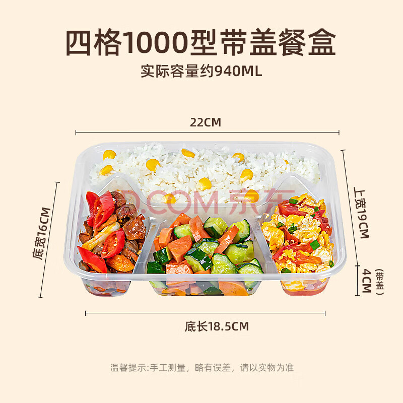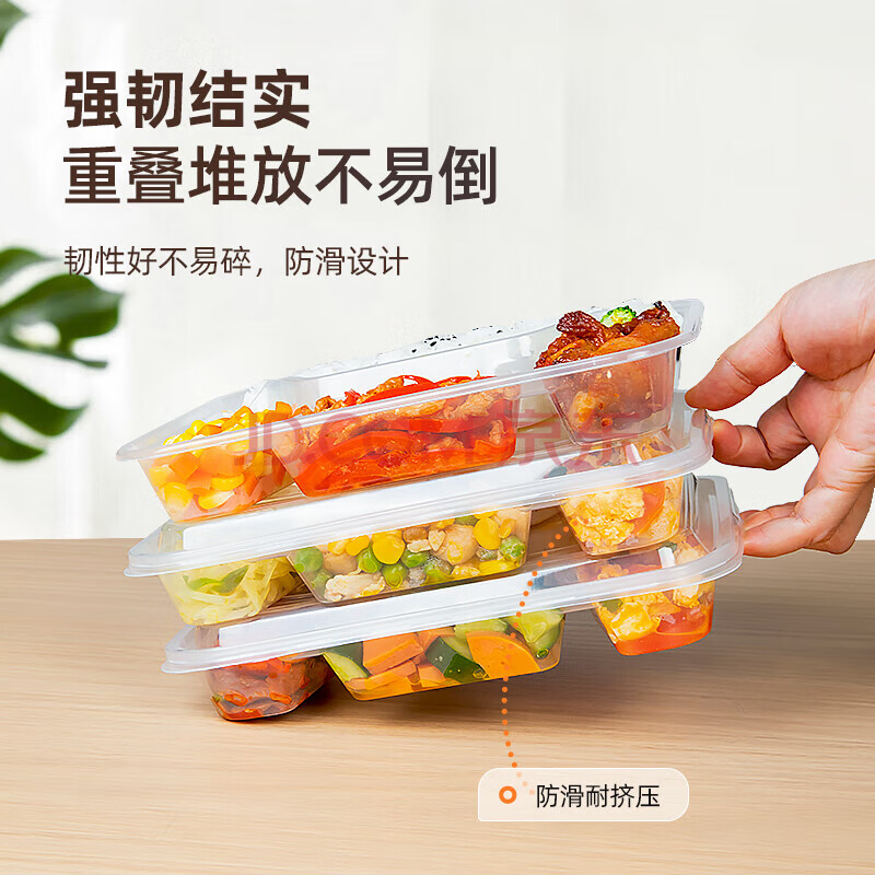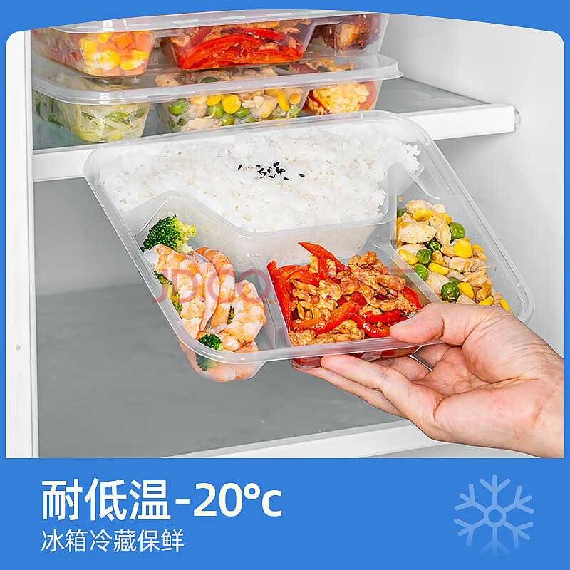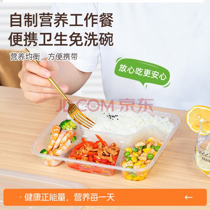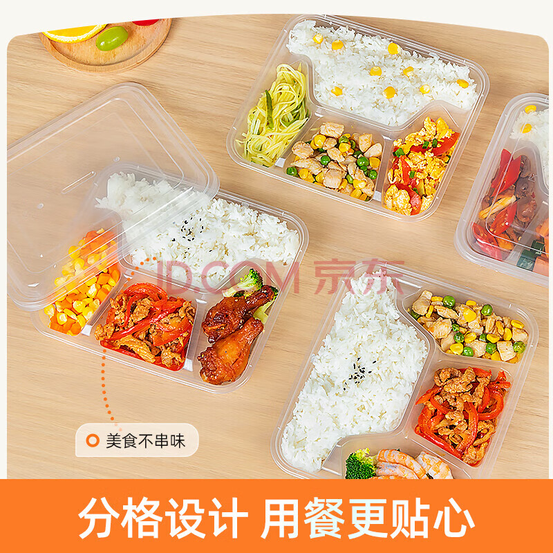 商品相册:特美居(temeiju)一次性饭盒大四格塑料餐盒加厚带盖打包盒餐具150套1000型可微波第