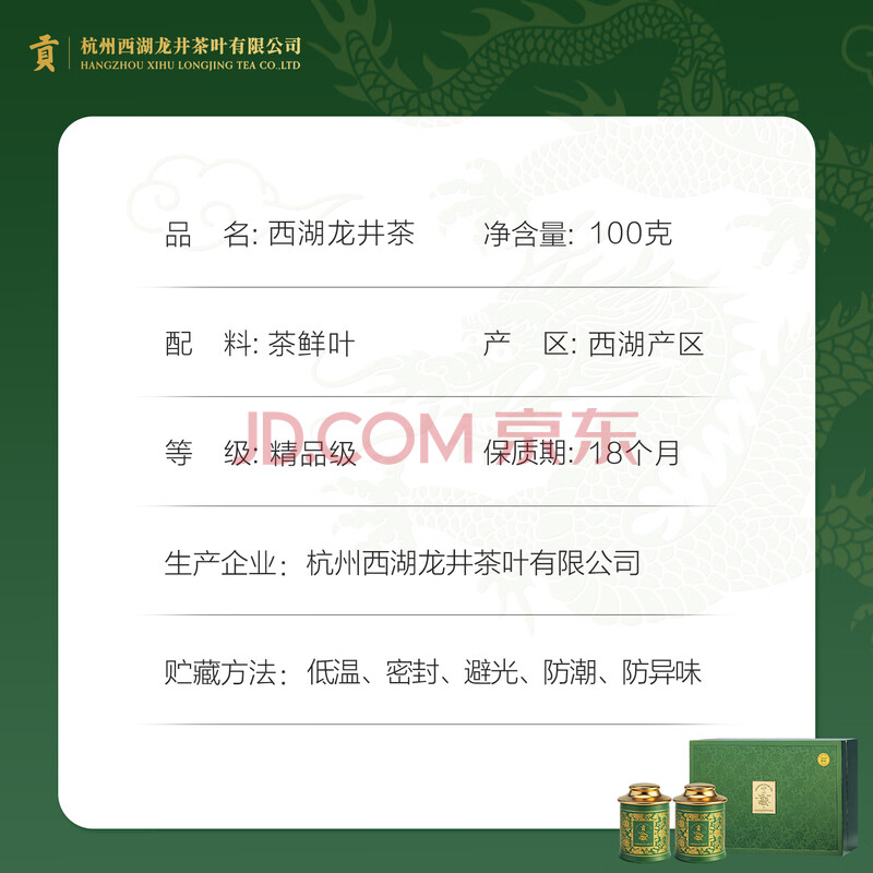 商品相册:贡牌2026新茶上市 绿茶西湖龙井茶精品级100g明前礼盒装源头直发第