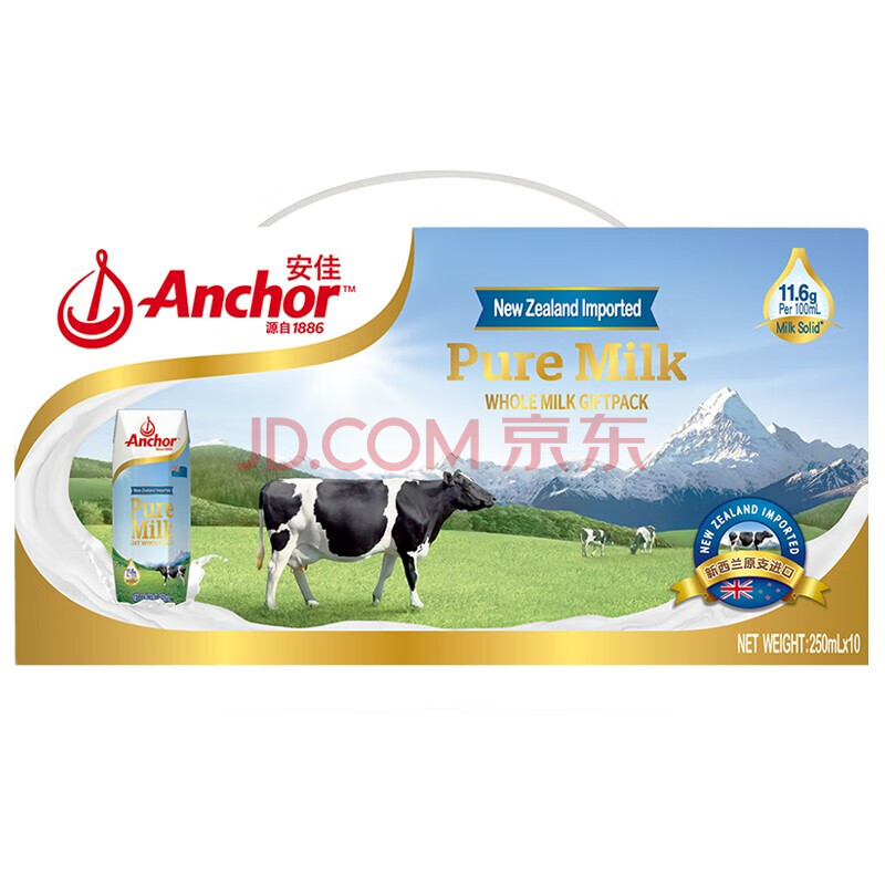 商品相册:安佳(Anchor)全脂牛奶 250ml*10 礼盒装 送礼佳品 新西兰进口草饲牛奶第