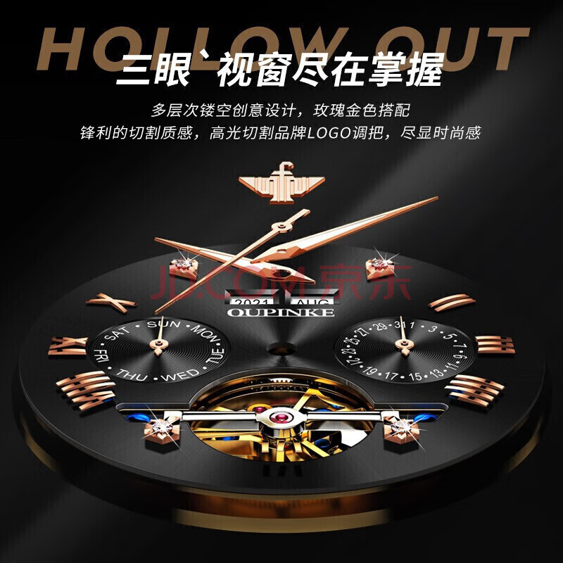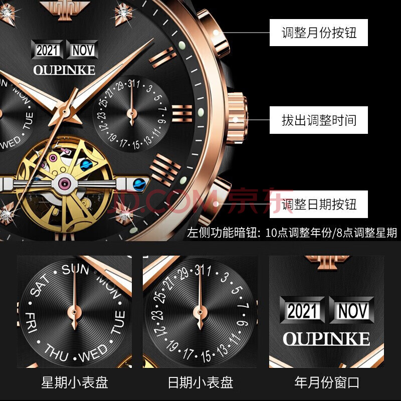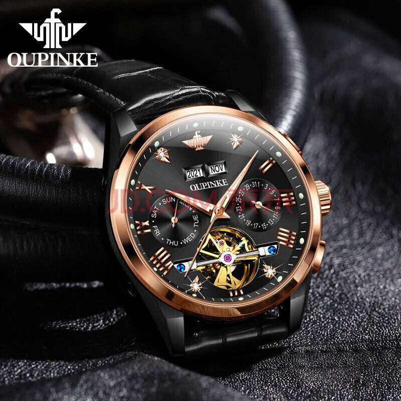 商品相册:欧品客男士机械手表全自动生日礼物商务防水高档国表瑞士认证品牌名表男第