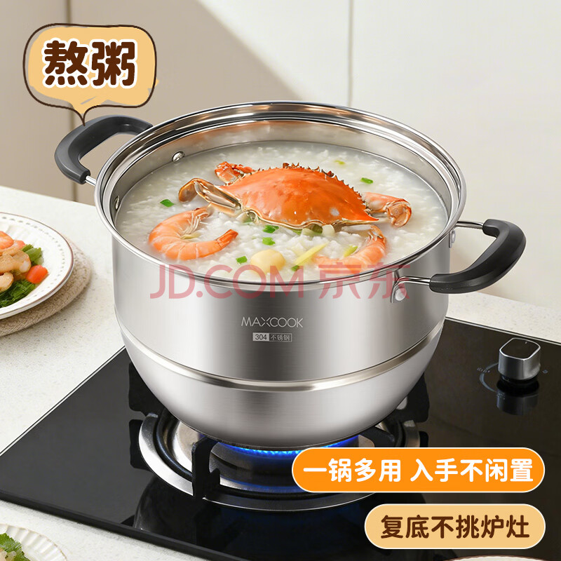 商品相册:美厨(maxcook)304不锈钢蒸锅34CM 二层复底 燃气炉电磁炉通用MCZ1536第