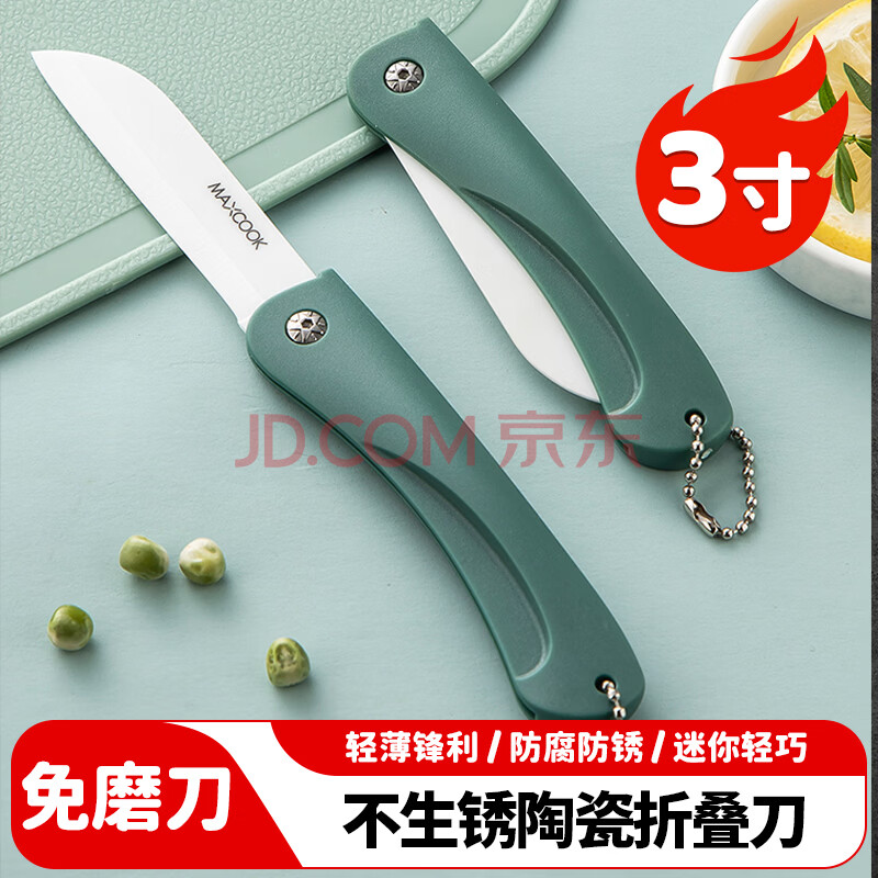 商品相册:美厨(maxcook)陶瓷刀水果刀 3英寸 可折叠小厨刀宝宝辅食刀 切水果刀具 MCD2243第1张/共9