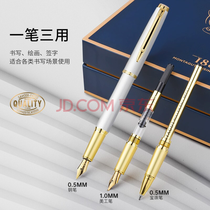 商品相册:梦特娇(MONTAGUT)【马年礼物】钢笔明尖特细签字笔男女学生成人办公礼品墨水礼盒套装睿智系列白丽雅第
