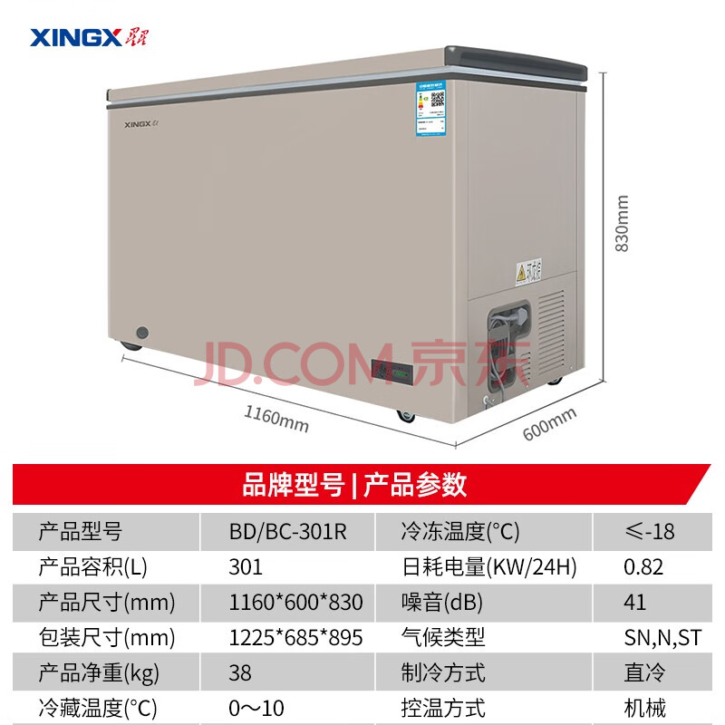 商品相册:星星(XINGX)301升 单温家用冷柜冰柜减霜80%二级能效预涂内胆 BD/BC-301R第