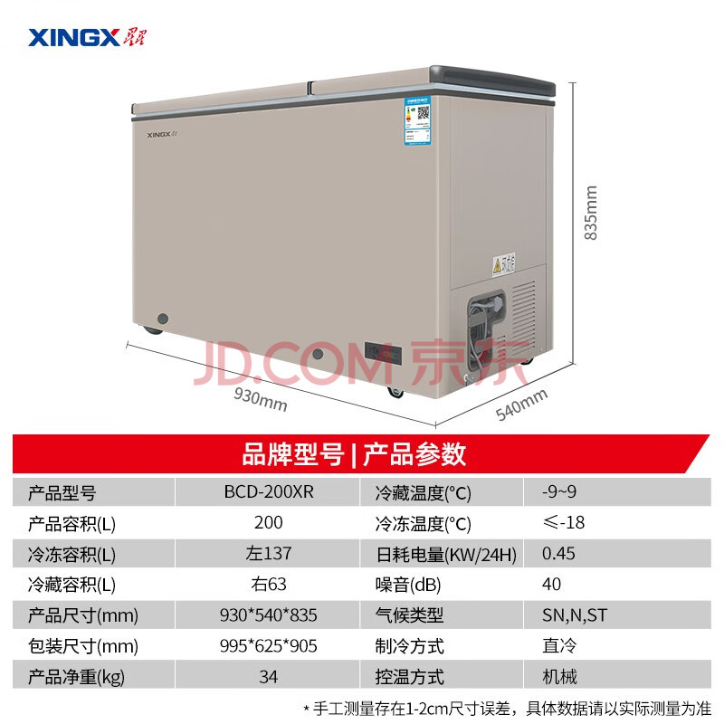 商品相册:星星(XINGX)200升 家用双温冷柜冰柜一级能效减霜80%预涂内胆 BCD-200XR第
