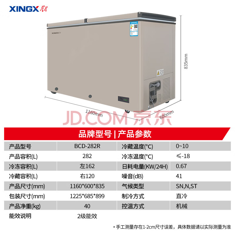 商品相册:星星(XINGX)282升 家用双温冷柜冰柜一级能效减霜80%预涂内胆 BCD-282R第