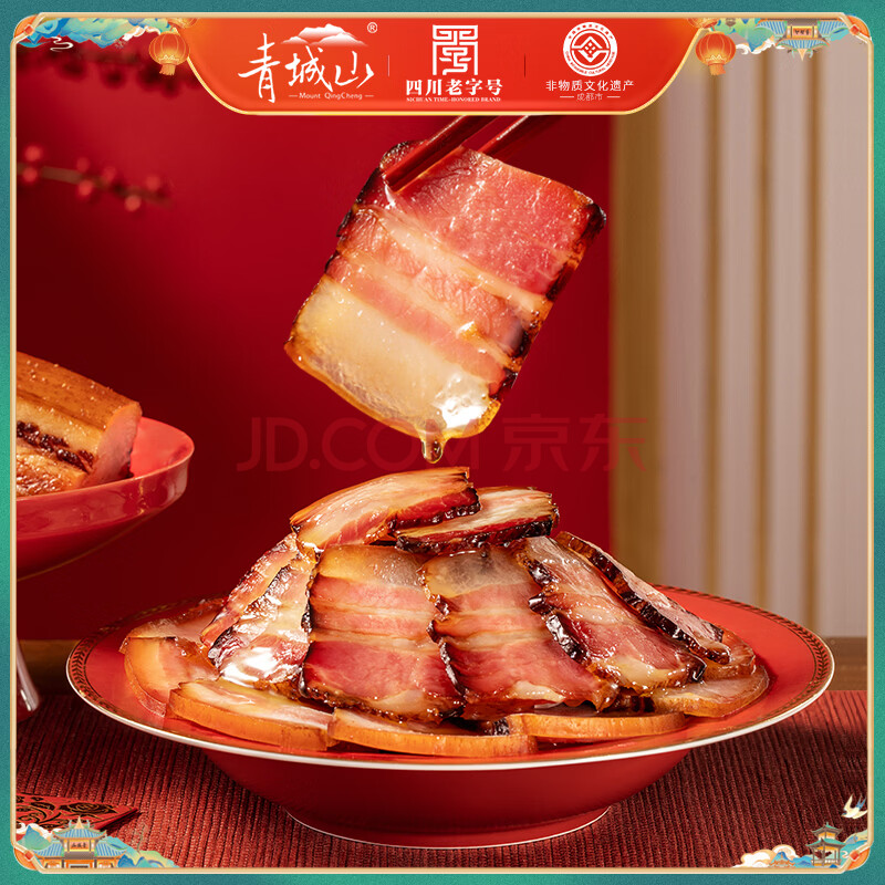 商品相册:青城山四川特产老字号非遗特产五花烟熏老腊肉458g员工团购送礼第