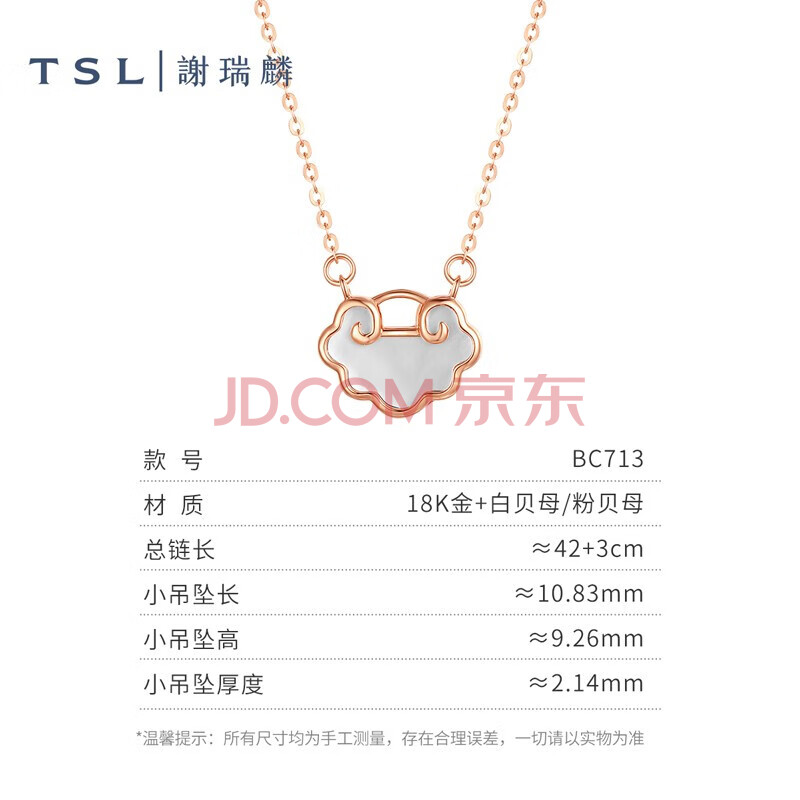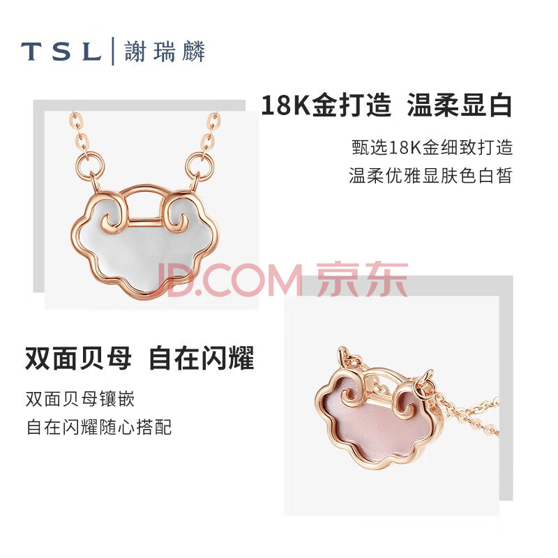 商品相册:谢瑞麟(TSL)悦己系列18k金项链白贝母粉贝母如意套链BC713(63871) 白贝母第