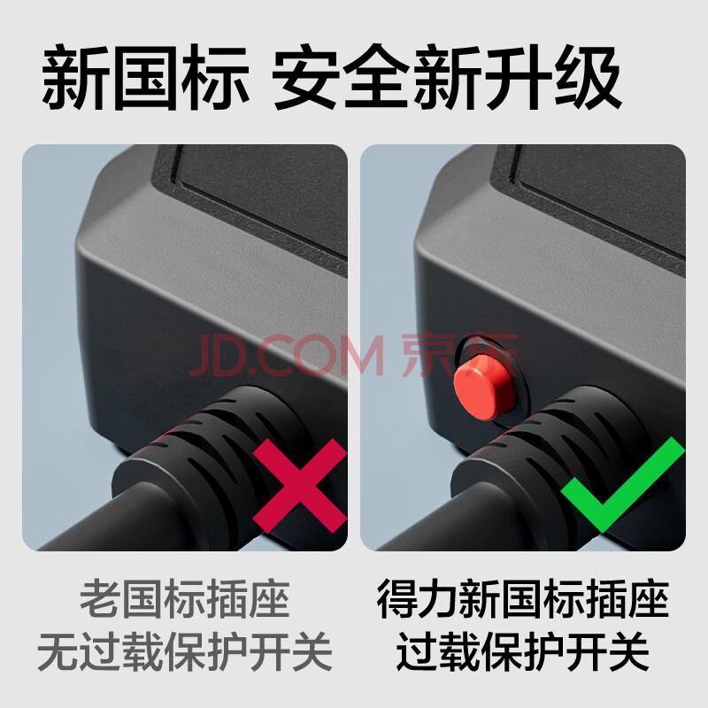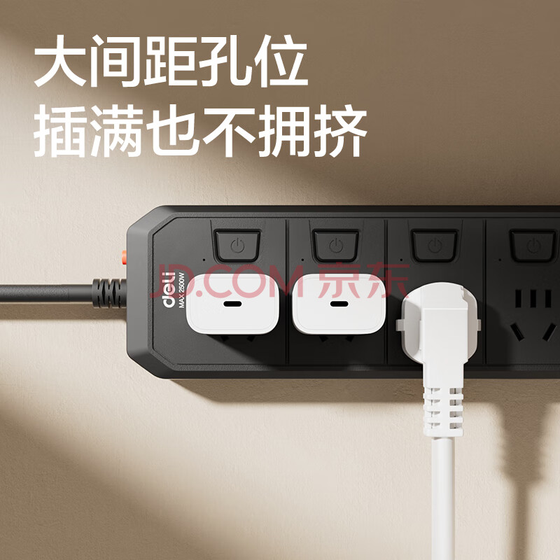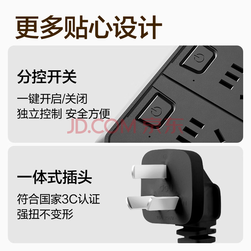 商品相册:得力(deli)3C认证国标安全插座/插排/插线板/排插/接线板 4位独立开关 分控 全长2米 黑色 18340(02)第