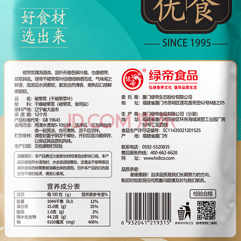 商品相册:绿帝 裙带菜90g 海带菜 凉拌煲汤 海产干货 第