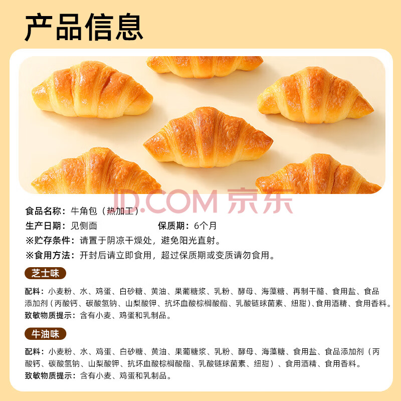 商品相册:达利园牛角包芝士味240g独立包装可颂面包休闲零食学生营养早餐第1张/共5